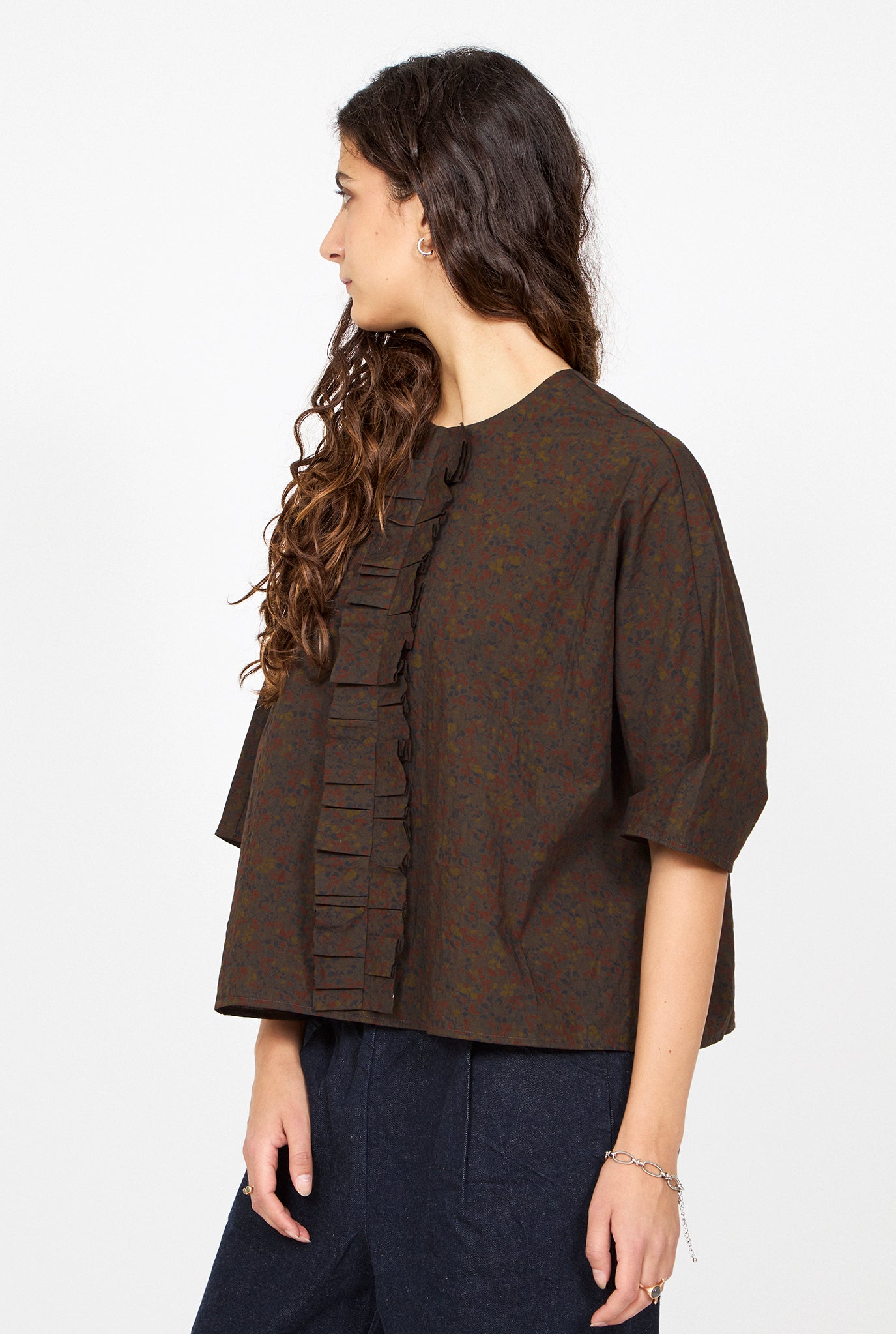 Features a loosely structured cut and gentle crop for everyday wear. Italian made with 99% cotton. Model is 5'8" and wearing a size 0.