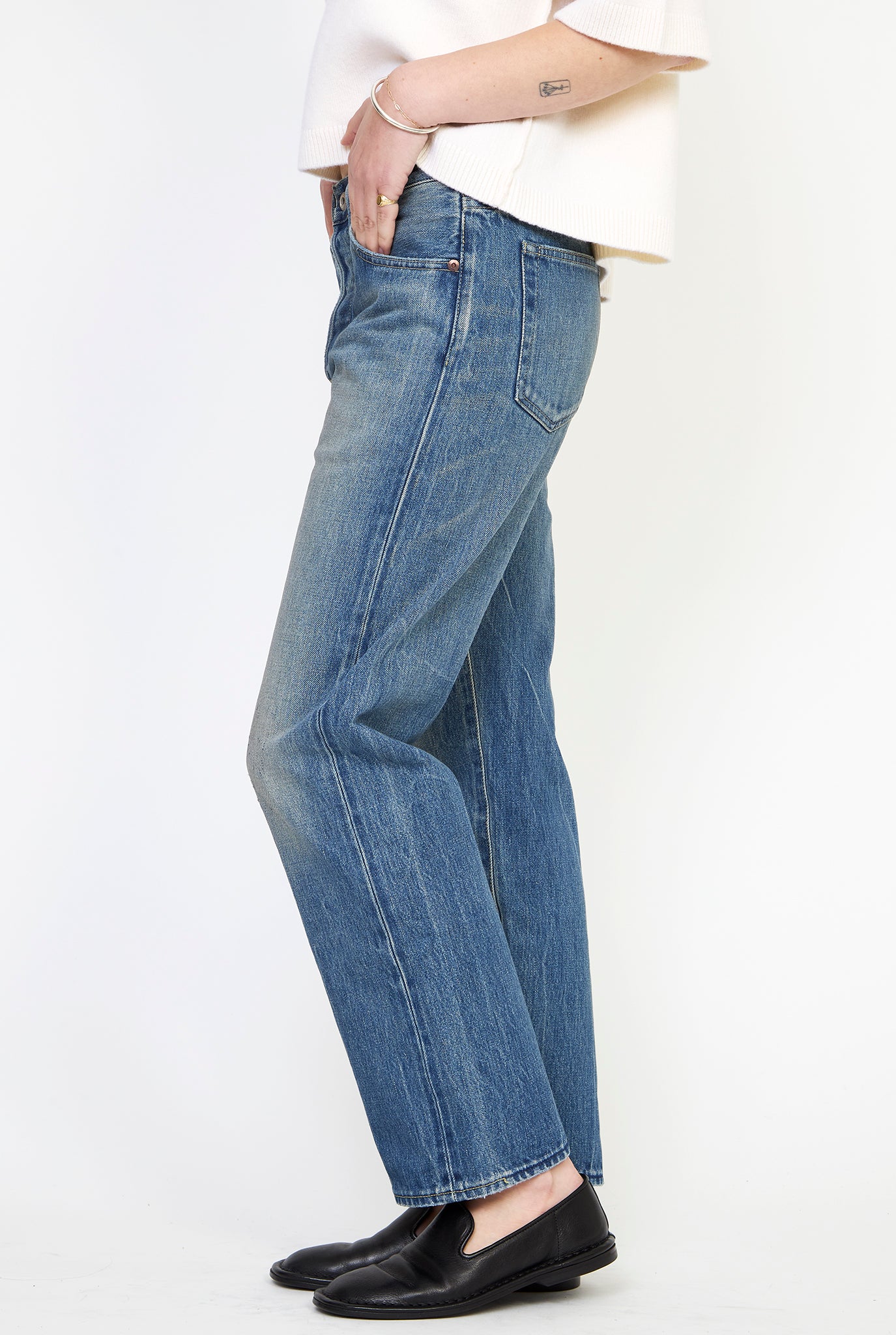 Chimala 13.5 oz selvedge denim Used Ankle Cut. Chimala's classic styling is modeled from a vintage pair of Levis 501. It is loose through the hips and cropped to the ankle.